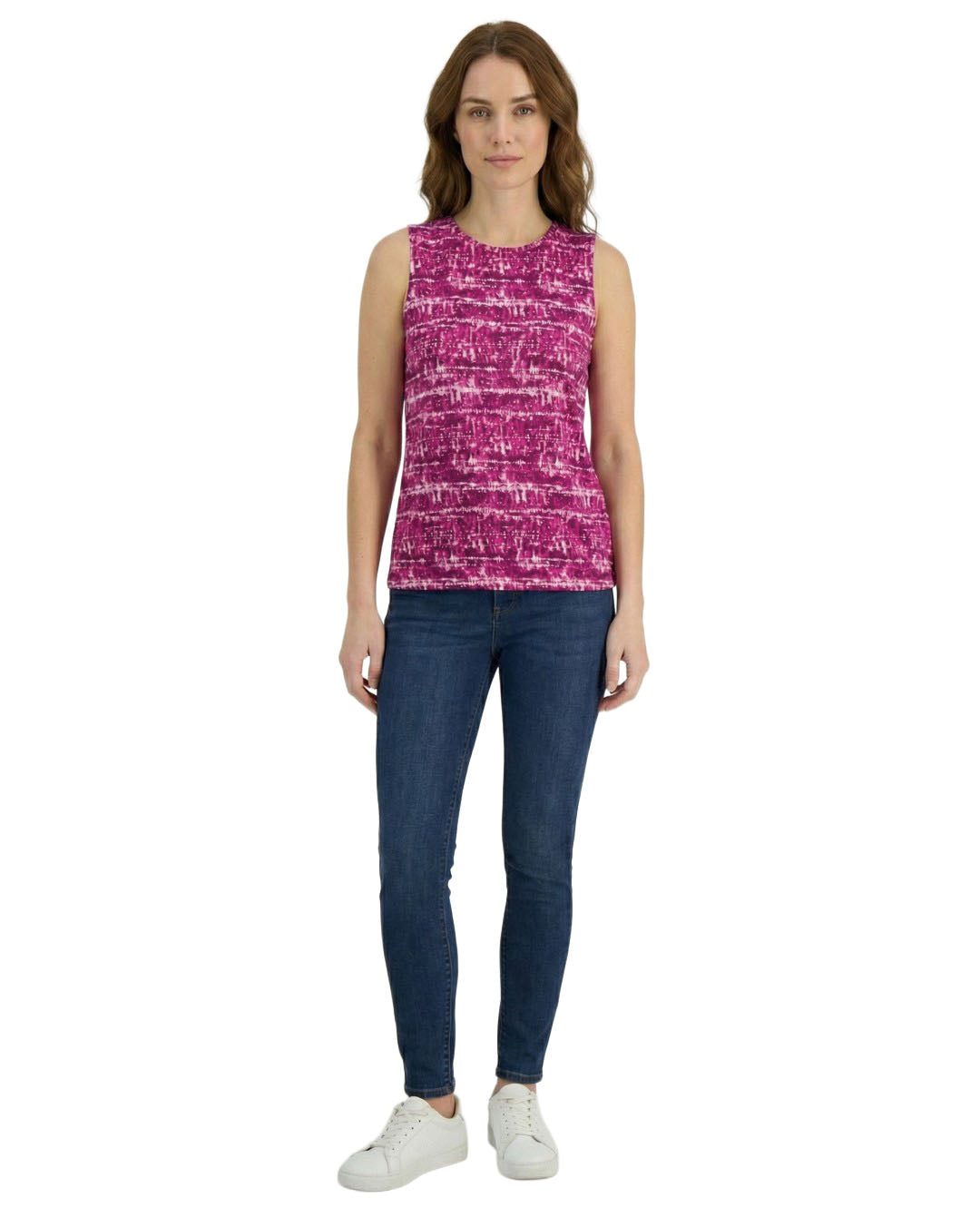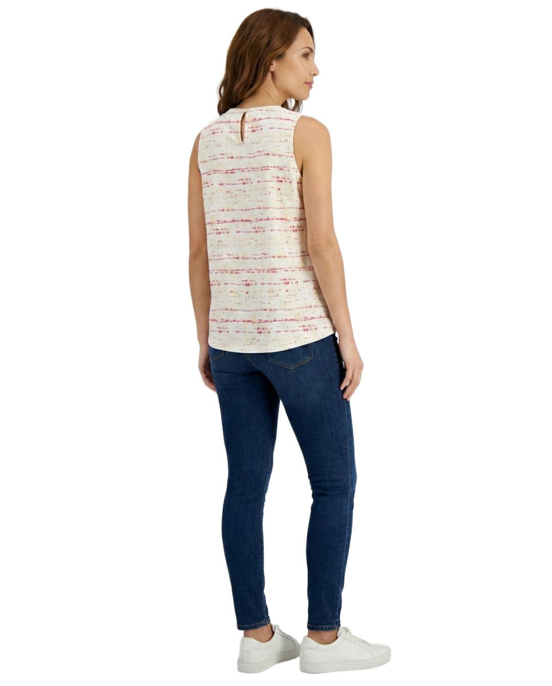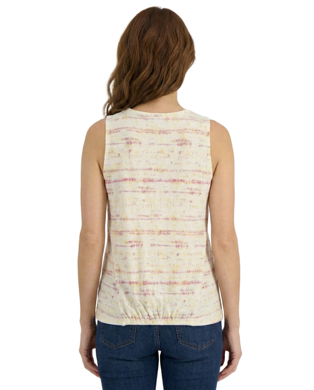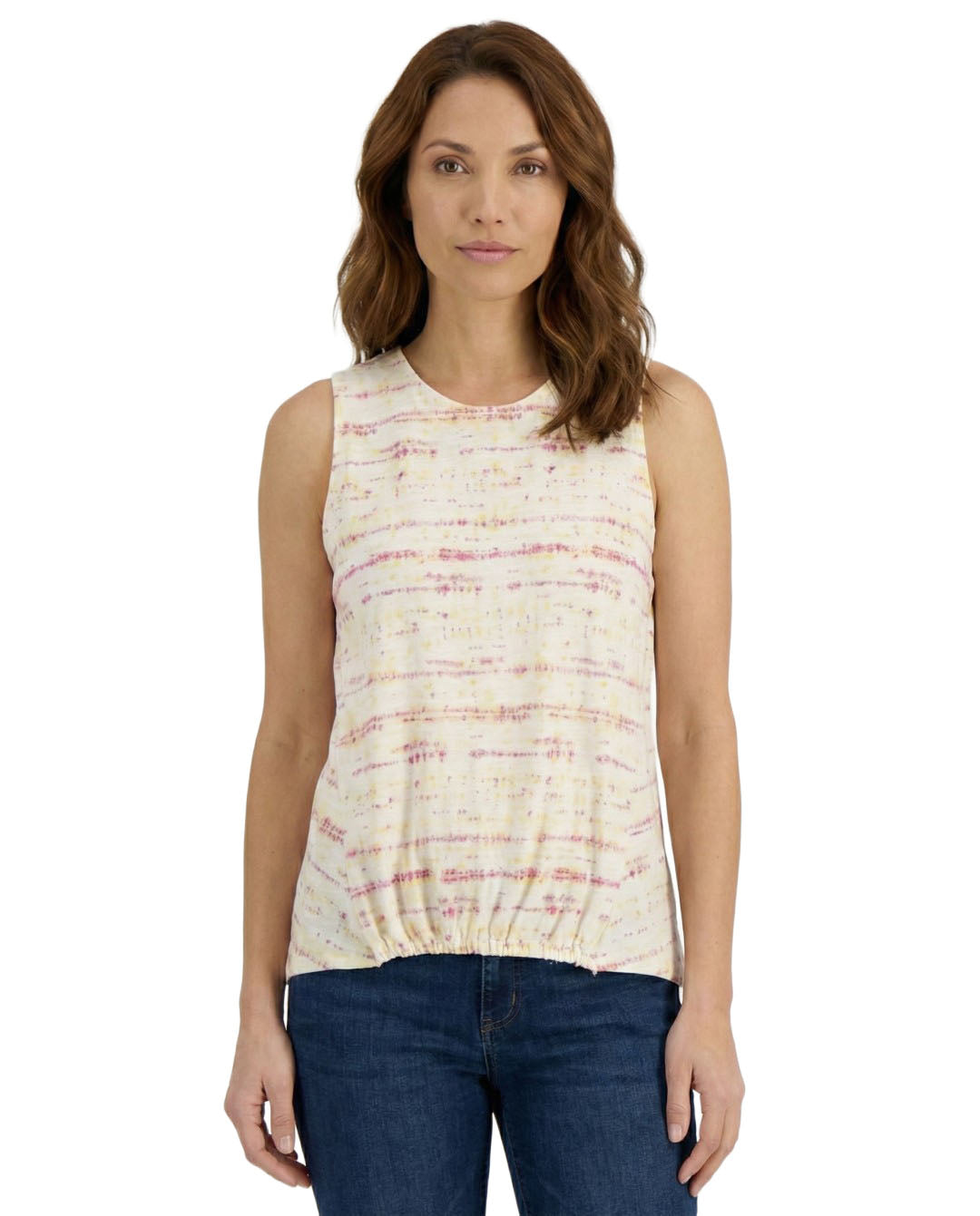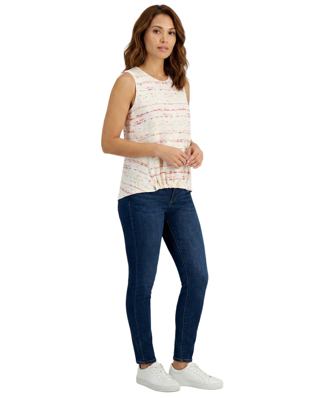 Alfani Transforms The Timeless Sleeveless Top With This Modern Design, A Chic Crewneck Style Decorated In An Abstract Print And Finished With An Adjustable Bungee Hem For Added Shape.
