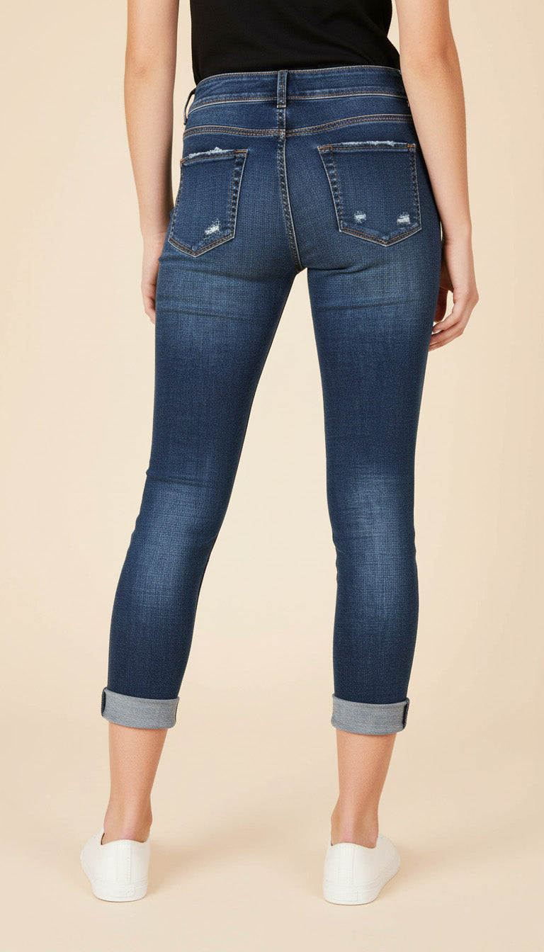 Indigo Rein's Modern Take On Classic Skinny Jeans Brings Rips, Abrasion Treatment And Cuffed Hems Into Play For A Fun Fashion Look.