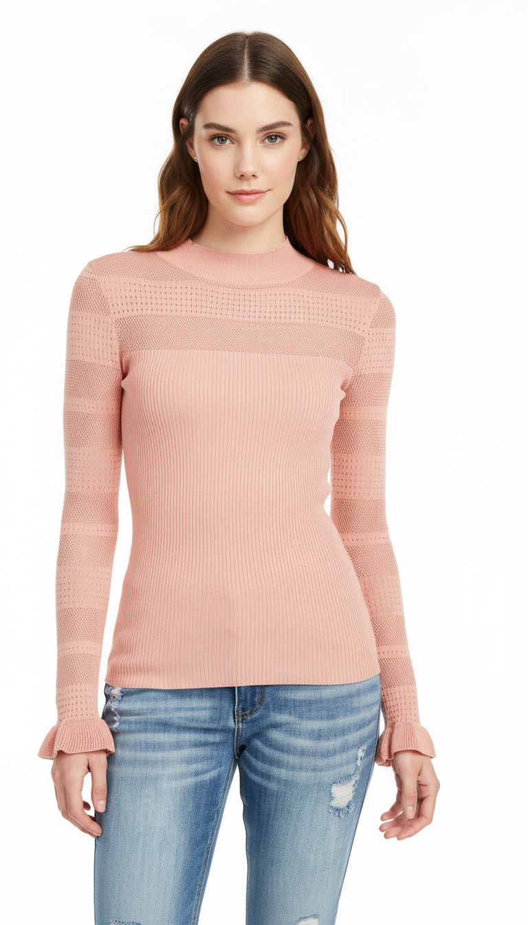Teen Pointelle Mock Neck Sweater (Young Women's Fit)