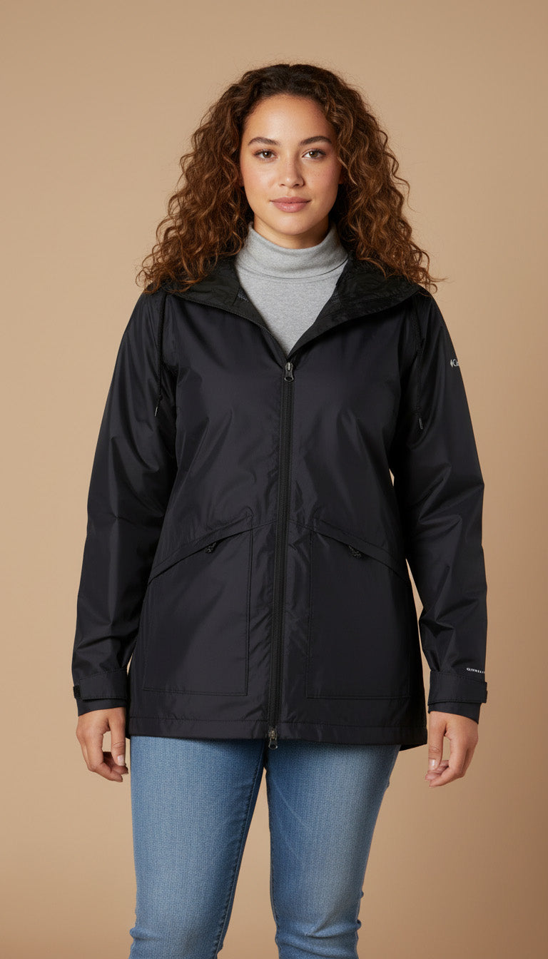 Lightweight and breathable, the Arcadia Omni-Tech™ jacket from Columbia is a water repellent pick designed with a drawstring hood and two zipper pockets at the front.