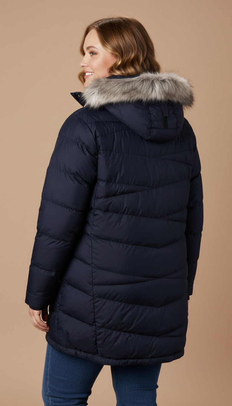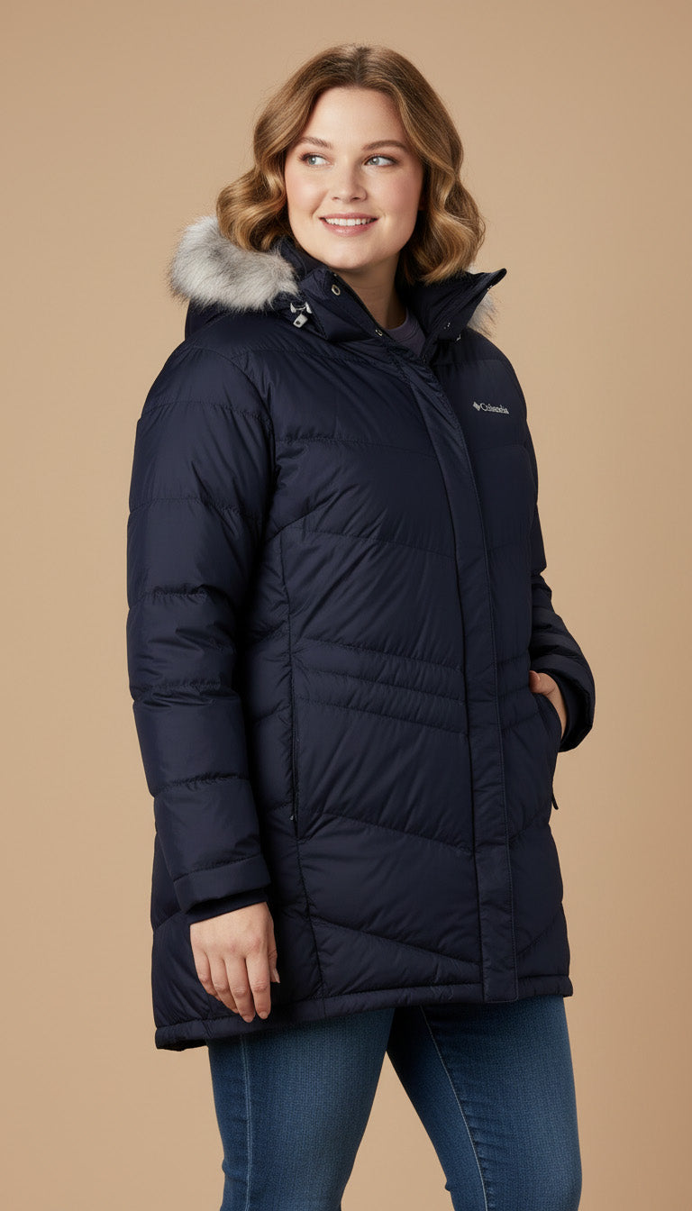 Quilted and warm, with a faux-fur lined hood, this plus size jacket from Columbia is ready to keep you cozy while you're out on a chilly hike.