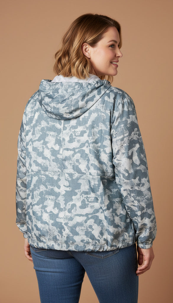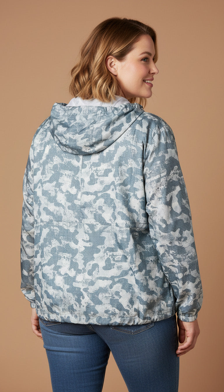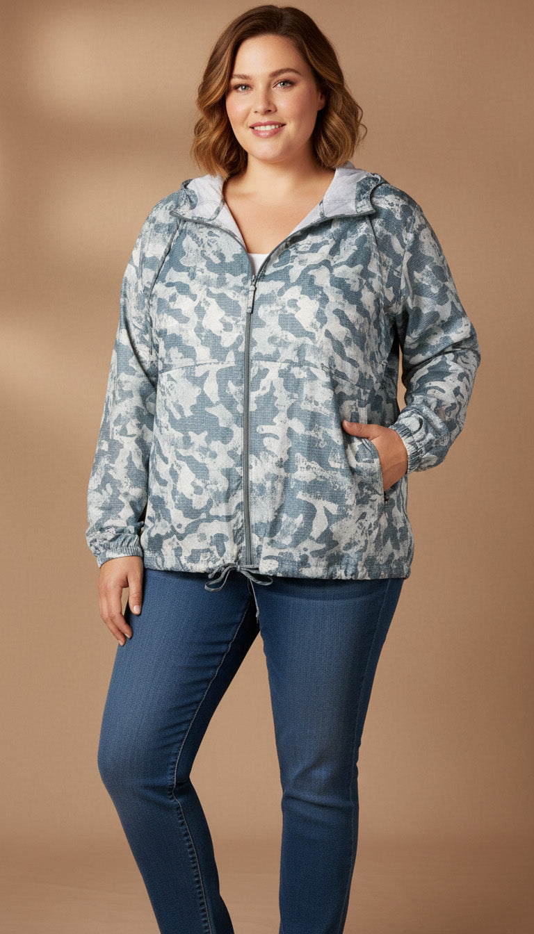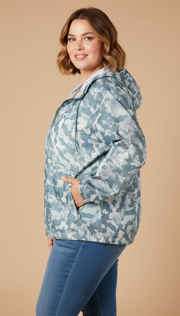 Women's Plus Printed Hooded Windbreaker